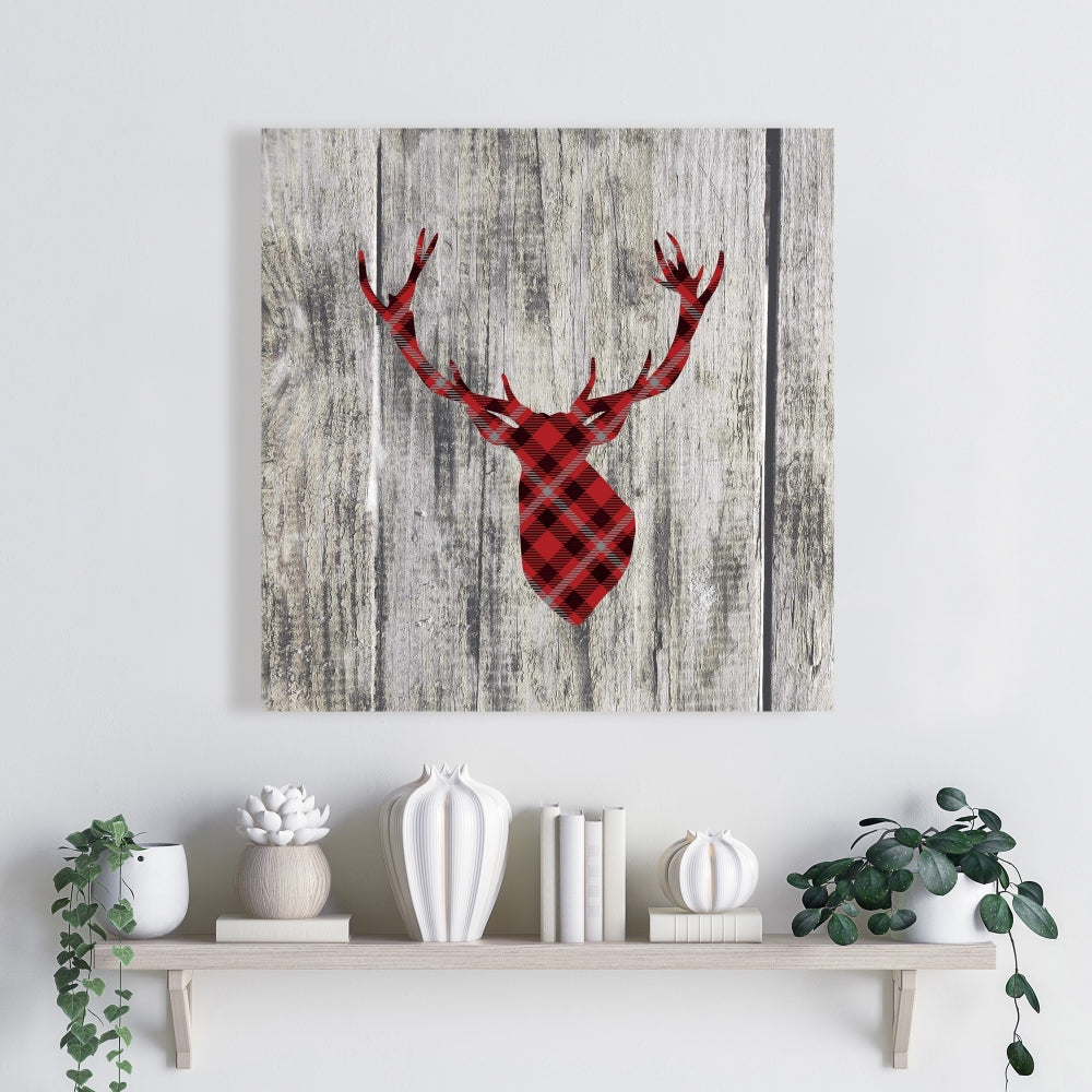 Wood and Deer Gray Canvas - Deer Bedroom Decor Wall Art