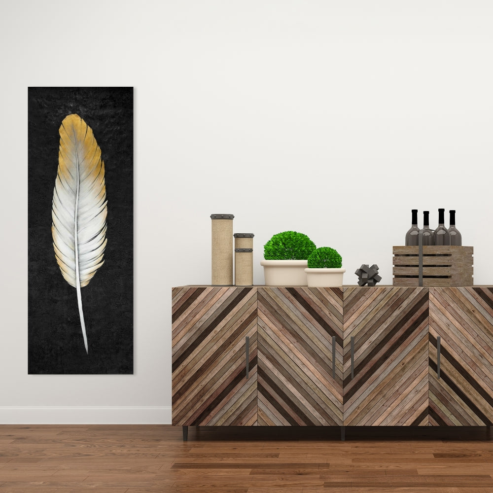 Golden Feather Bohemian Canvas | White Bedroom Wall Decor