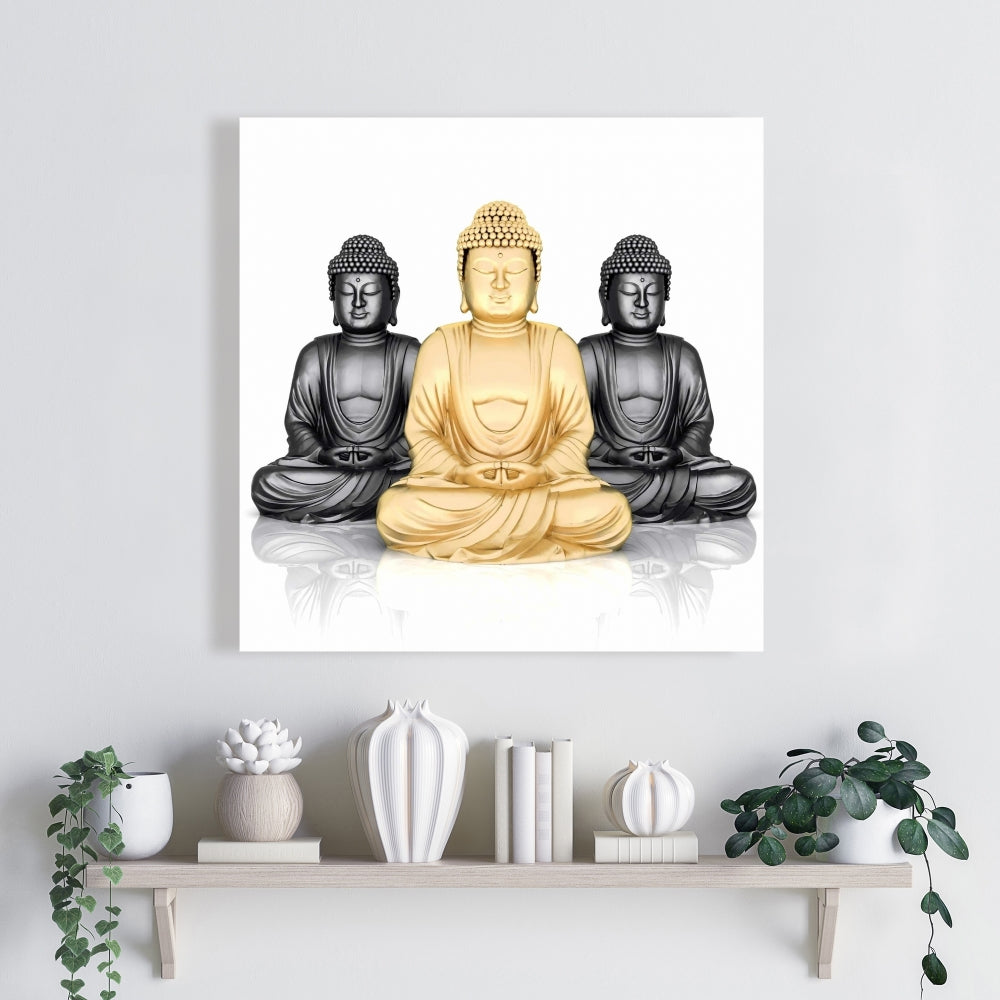 Elevate your home decor with the Ethnic White Shapes Canvas - Trio of Buddhas. This exquisite piece features a serene and spiritual trio of Buddha figures, meticulously crafted to bring tranquility and harmony to any space. The minimalist white shapes contrast beautifully against the canvas, creating a timeless and sophisticated look. Perfect for living rooms, bedrooms, or meditation spaces, this canvas art enhances any interior with its calming presence. The unique ethnic design adds a touch of cultural richness and depth, making it a standout piece in contemporary or traditional settings. Crafted with high-quality materials, the canvas ensures durability and a long-lasting display of elegance. Ideal for those seeking a peaceful ambiance, this canvas also makes a thoughtful gift for loved ones who appreciate spiritual and artistic expressions. Transform your home into a sanctuary of peace and style with the Ethnic White Shapes Canvas - Trio of Buddhas, where serenity meets art.