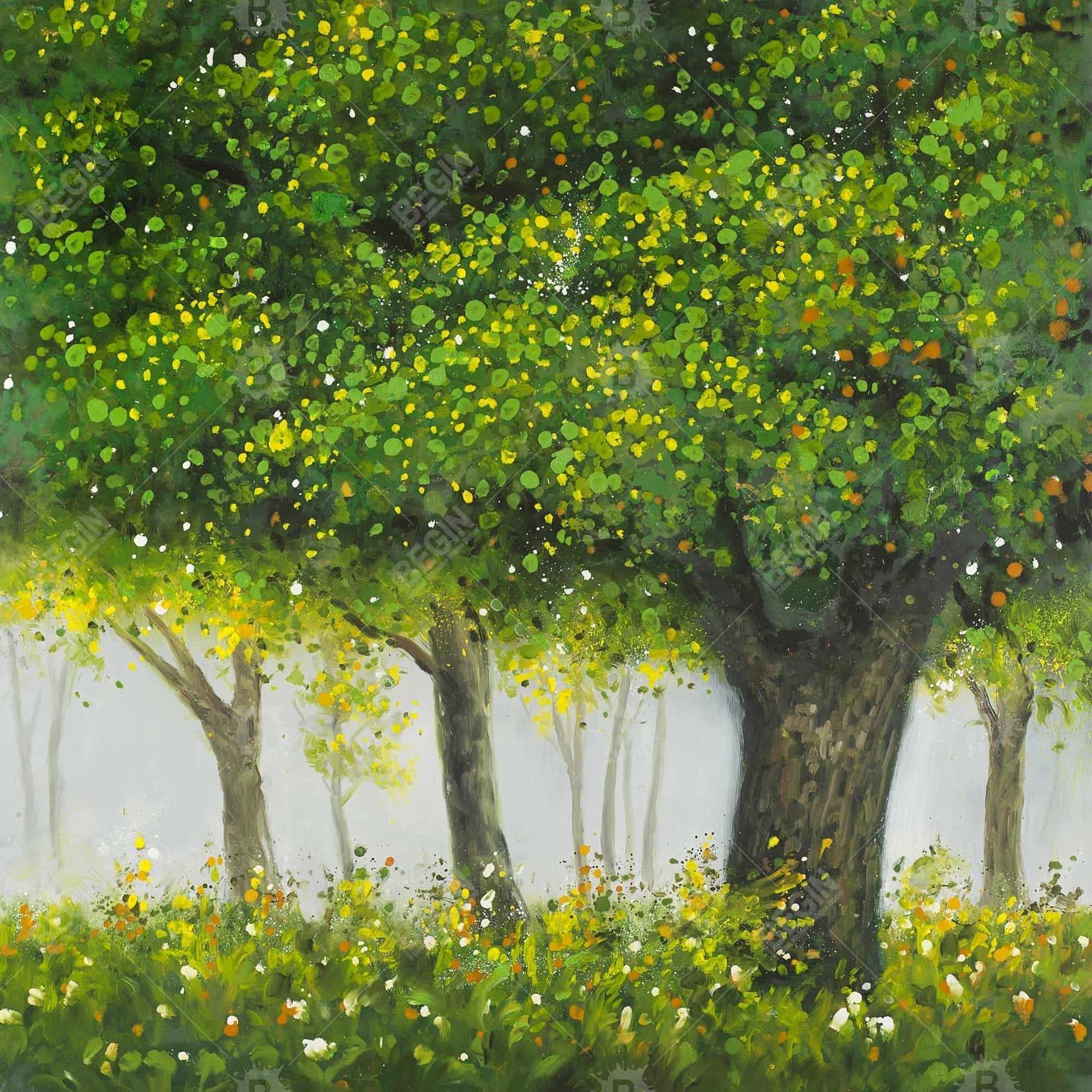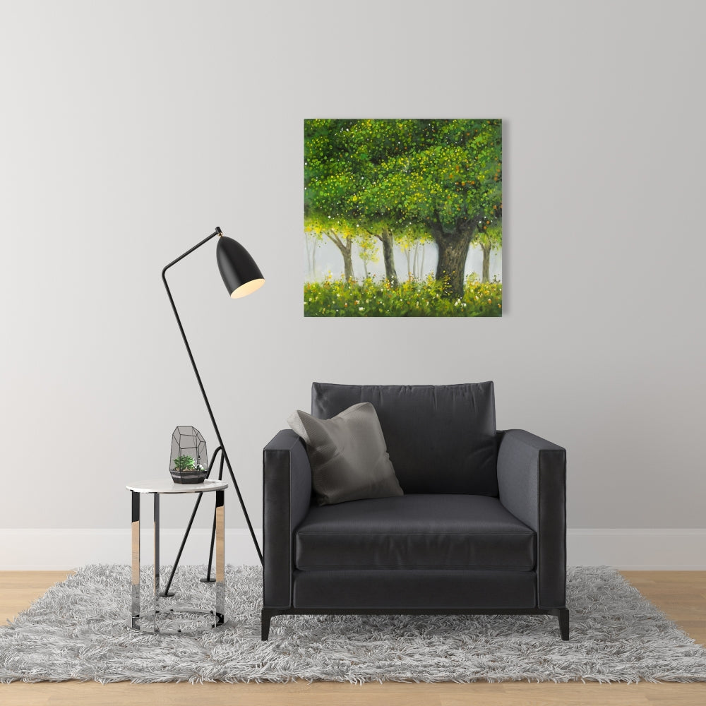 Crafted with high-quality materials, the canvas features rich greens and earthy tones, creating an immersive experience that invites relaxation and peace. The detailed brushstrokes and vivid colors of the trees enhance the visual appeal, making it a captivating focal point for your space.