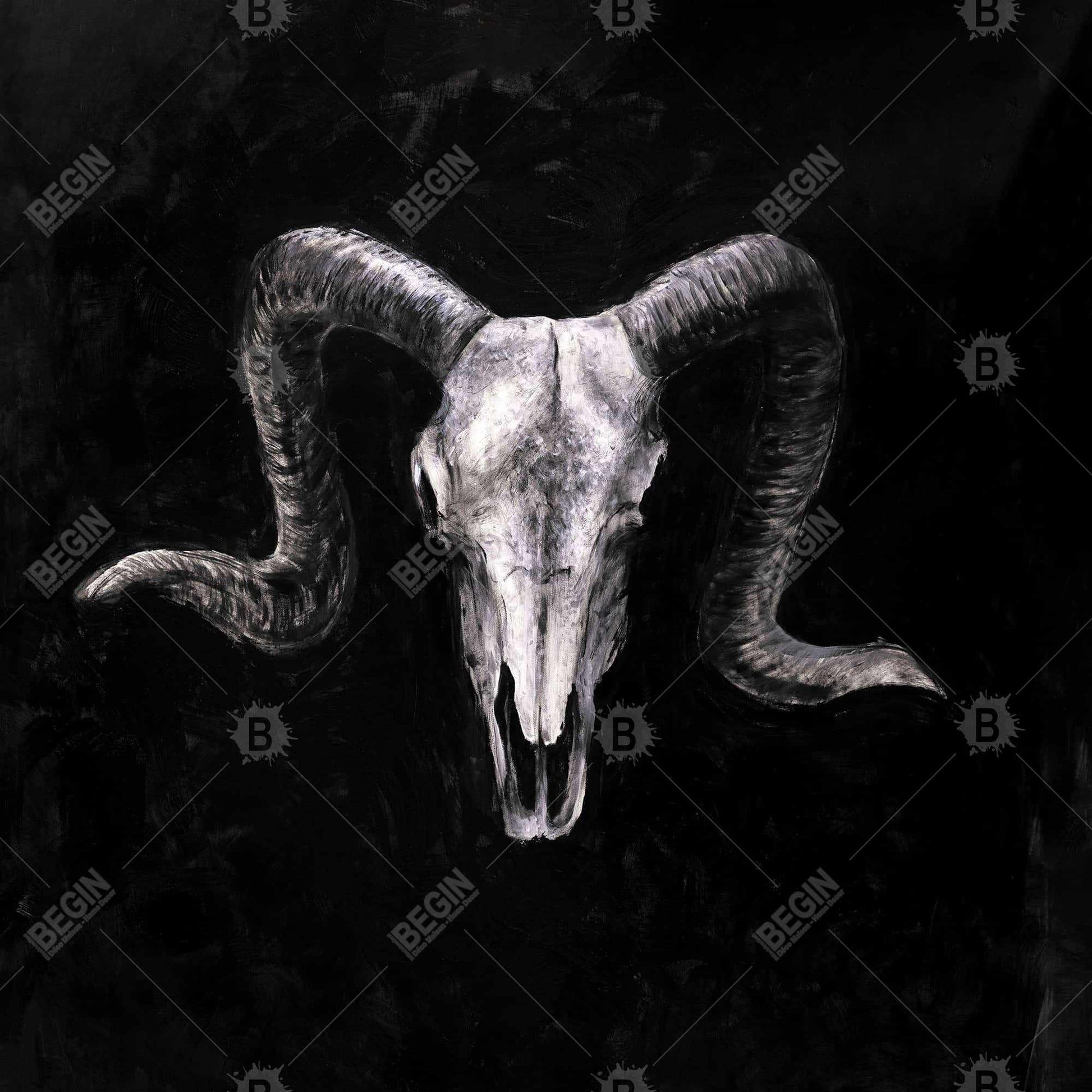 Ram Skull Grunge Style Canvas | Gray Farm Animals Decor