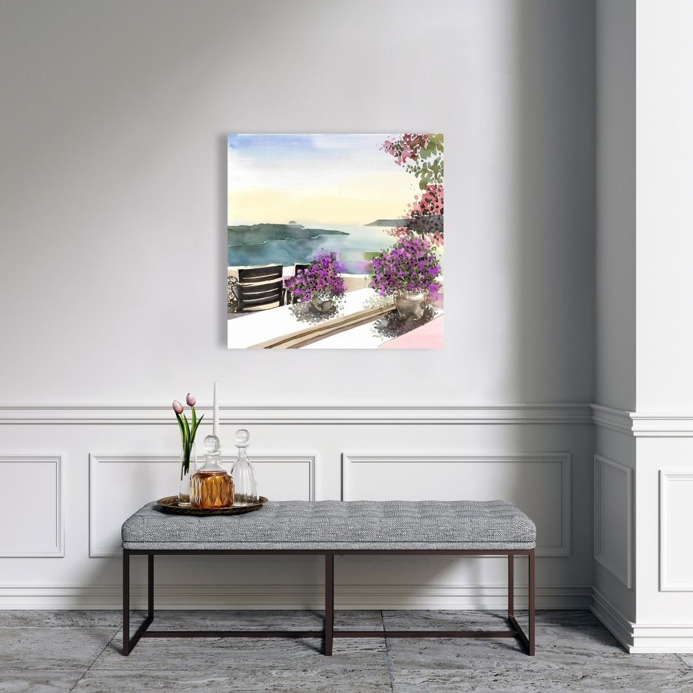 Illustrative Blue Coastal Canvas - Mediterranean Sea View Decor