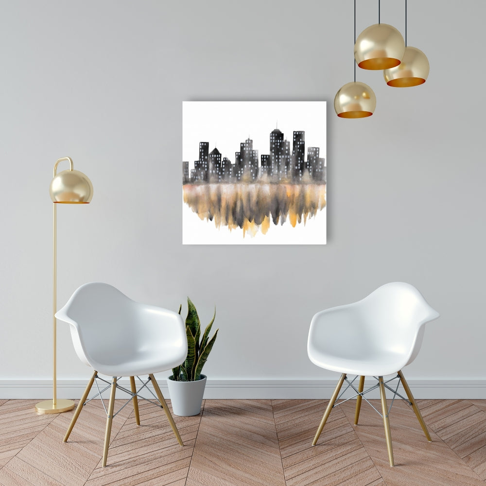 Yellow Watercolor Cityscape Canvas - Bedroom Wall Art Decor