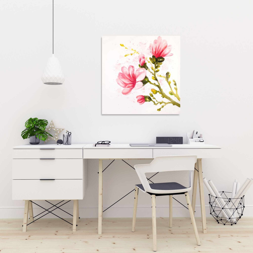 Enhance your bedroom's ambiance with the stunning Flowers Bedroom Pink Canvas featuring Watercolor Magnolia Flowers. This exquisite wall art brings a touch of elegance and serenity to your home decor. The delicate watercolor magnolia flowers in soft pink hues add a refreshing and calming atmosphere, perfect for creating a tranquil retreat. Crafted with high-quality materials, this canvas is designed to last, maintaining its vibrant colors and intricate details. Ideal for above the bed or as a focal point on any wall, it seamlessly complements various interior styles, from modern to classic. Transform your living space with this beautiful masterpiece, making it an ideal gift for flower lovers or a delightful treat for yourself. Elevate your home decor with the timeless beauty of Watercolor Magnolia Flowers and experience the peacefulness it brings to your personal sanctuary.