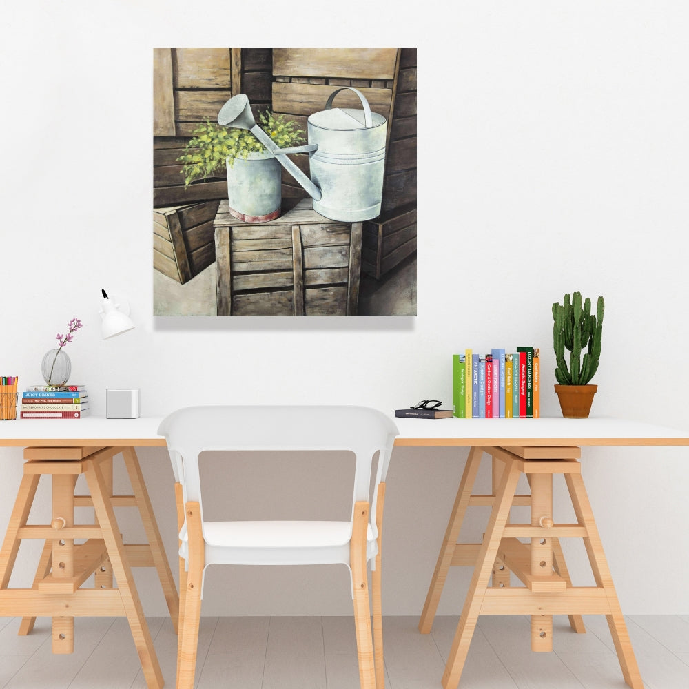 Vintage Watering Can Canvas | Brown Still Life Home Decor