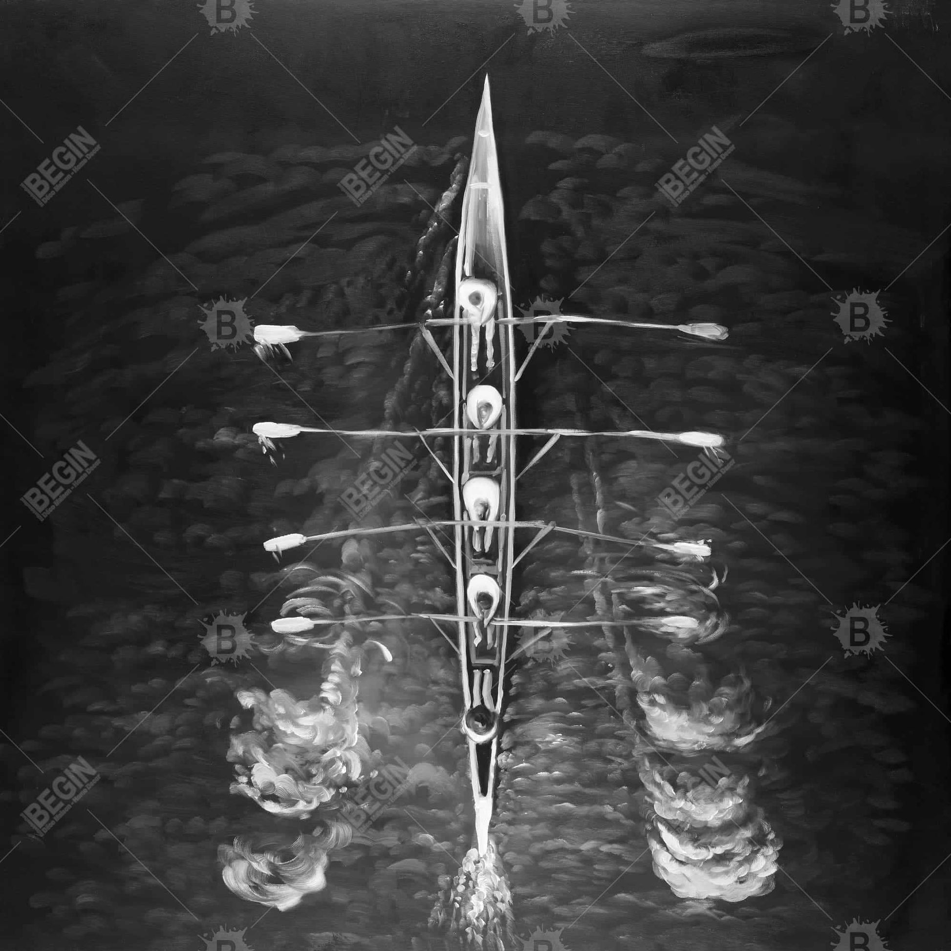 White Framed Rowing Boat Canvas - Sports & Games Home Decor
