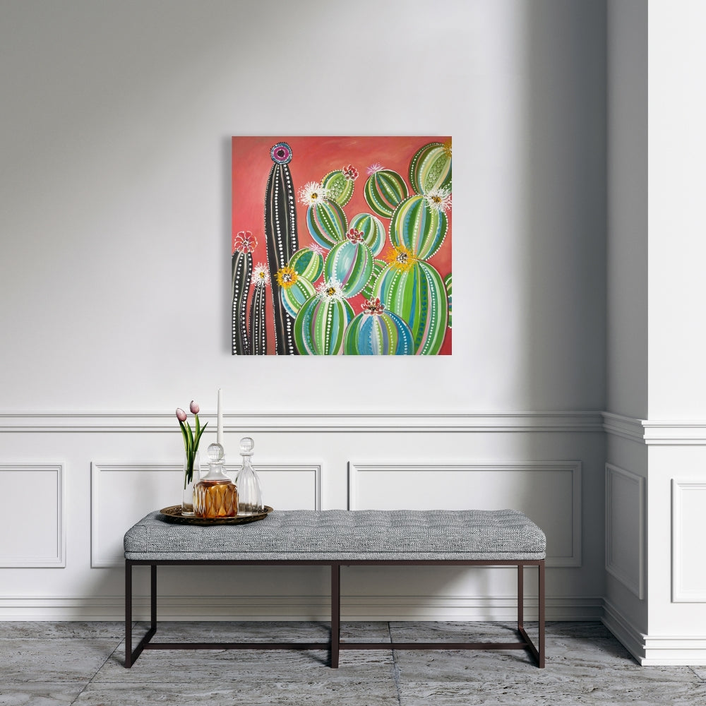 Rainbow Cactus Botanical Canvas | Exotic Livingroom Decor