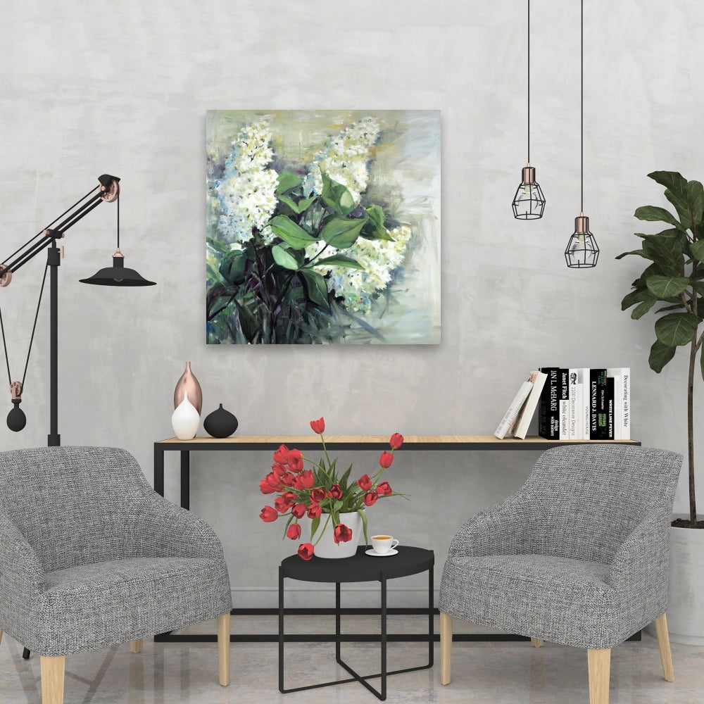 White Lilacs Canvas - Blue Botanical Floral Home Decor Art