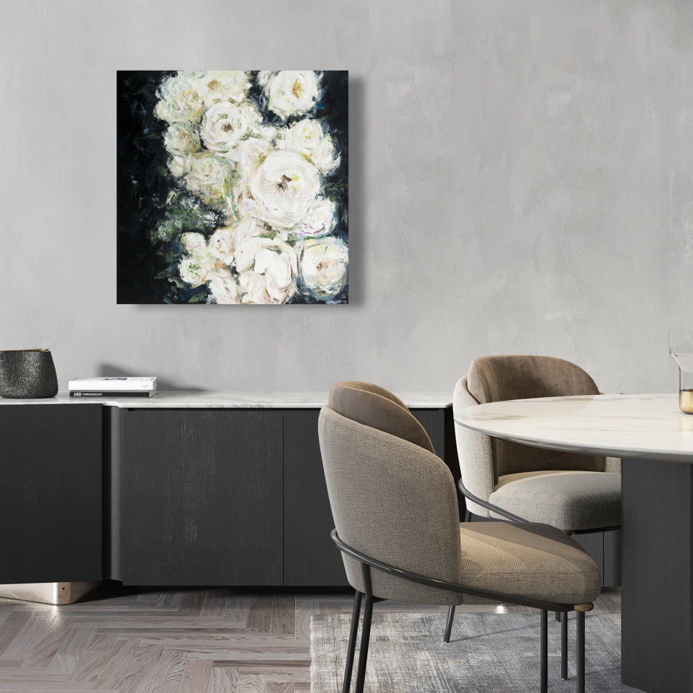 Garden Roses Botanical White Floral Canvas - Home Decor Art