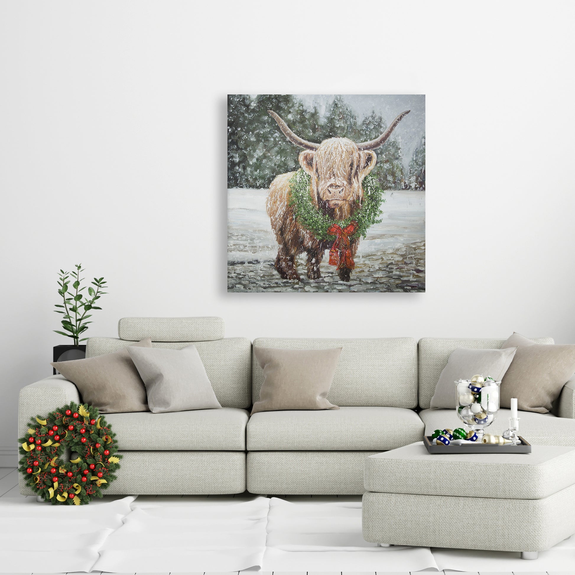 Elevate your home decor with the charming Highland Christmas Cow canvas, a perfect blend of rustic elegance and festive cheer. This exquisite white farm animal artwork features a Highland cow adorned with a Christmas wreath, bringing a touch of countryside charm to your living space. Ideal for farm animal lovers and those seeking a unique holiday accent, this canvas is crafted with high-quality materials to ensure vibrant colors and lasting durability. Perfectly sized for any room, it adds warmth and seasonal spirit to your home. Whether displayed in the living room, kitchen, or entryway, this Highland Christmas Cow canvas is sure to captivate guests and create a welcoming atmosphere. Enhance your festive decor with this delightful piece that celebrates the beauty of nature and the joy of the holiday season. Perfect as a gift or a personal treat, this canvas is a must-have for anyone looking to add a touch of whimsy and elegance to their holiday decorations. Transform your space with this stunning Highland Christmas Cow canvas and enjoy the serene beauty it brings year-round.