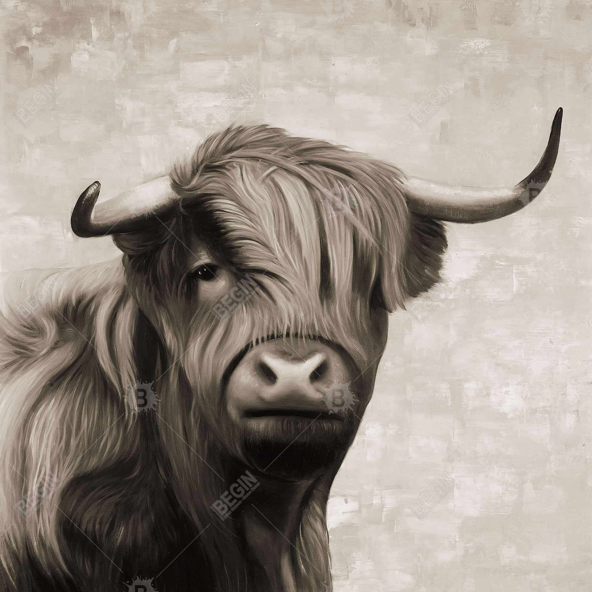 Highland Cattle Sepia Canvas - Beige Farm Animal Home Decor