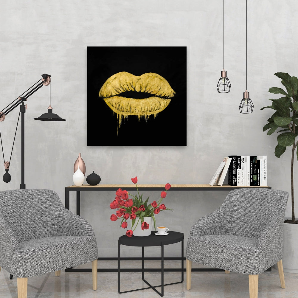 Golden Lips Black Canvas - Stylish Home Decor for Women