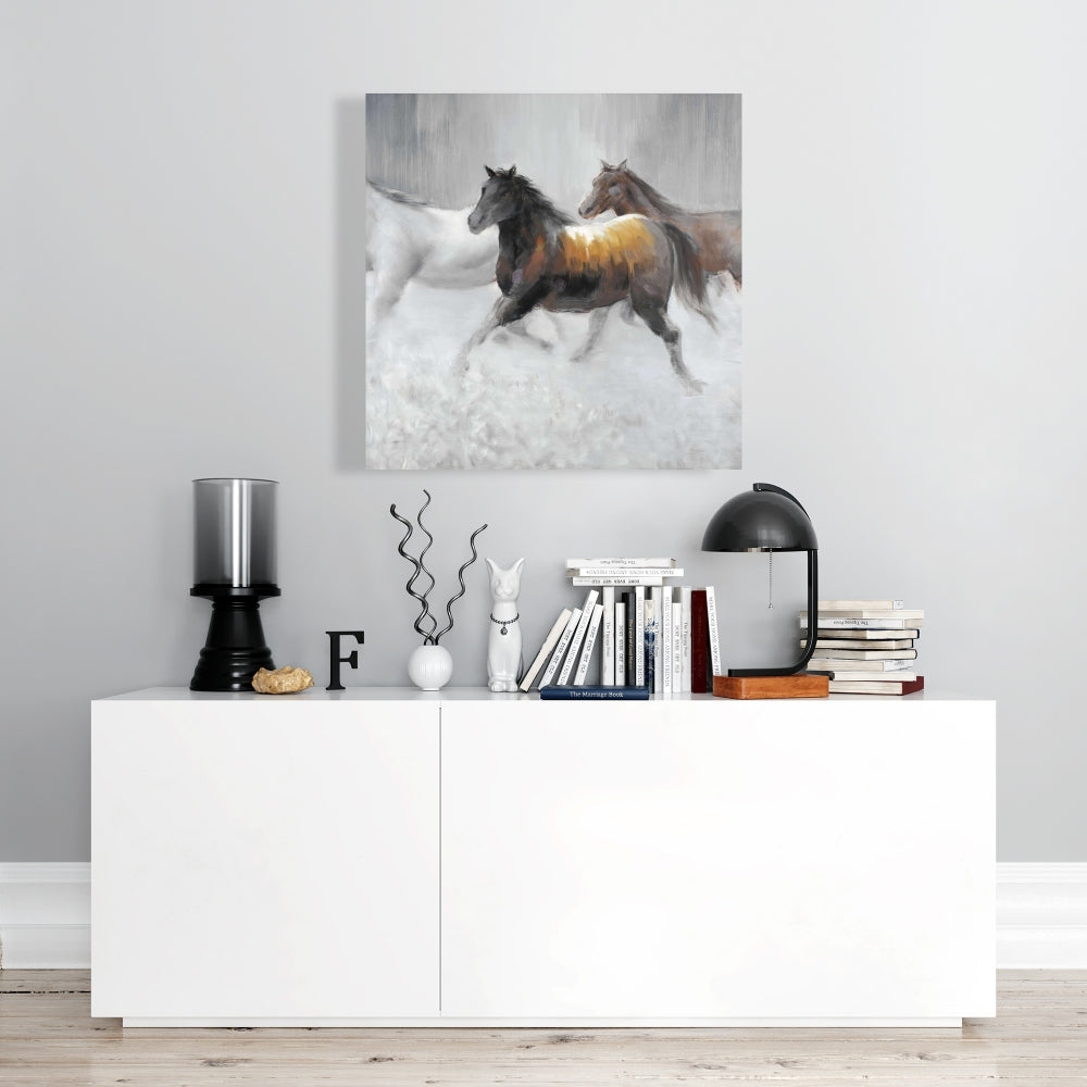 Enhance your home decor with our captivating Contemporary Animals Canvas featuring a stunning Herd of Wild Horses. This striking piece showcases the natural grace and freedom of wild horses galloping across open fields, bringing a touch of the wild into your living space. Ideal for modern and rustic interiors, this artwork adds a dynamic focal point to any room. Expertly crafted with high-quality canvas and vibrant colors, it ensures lasting beauty and durability. Perfect for animal lovers and nature enthusiasts, this canvas embodies the spirit of adventure and the untamed beauty of wildlife. Transform your living room, bedroom, or office with this unique art piece that celebrates the elegance of farm animals in their natural habitat. Easy to hang and available in various sizes, our Herd of Wild Horses canvas is an excellent choice for home decor.