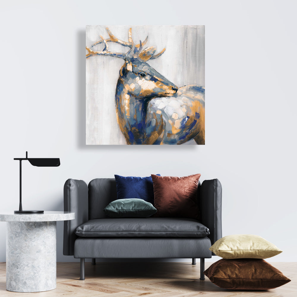 Enhance your home decor with the captivating Animals Deer Blue Canvas of Golden Deer. This stunning artwork features a majestic golden deer set against a serene blue backdrop, creating a harmonious blend of nature and elegance. Perfect for living rooms, bedrooms, or offices, this canvas adds a touch of sophistication and tranquility to any space. Crafted with high-quality materials, the vibrant colors and intricate details of the golden deer bring this piece to life. Ideal for nature lovers and art enthusiasts, the Golden Deer canvas is a unique statement piece that complements modern and traditional interiors alike. Easy to hang and maintain, it offers a hassle-free way to elevate your home decor. Transform your walls with this exquisite wildlife art and invite the serene beauty of nature into your home. Discover the perfect balance of style and serenity with the Animals Deer Blue Canvas of Golden Deer today.