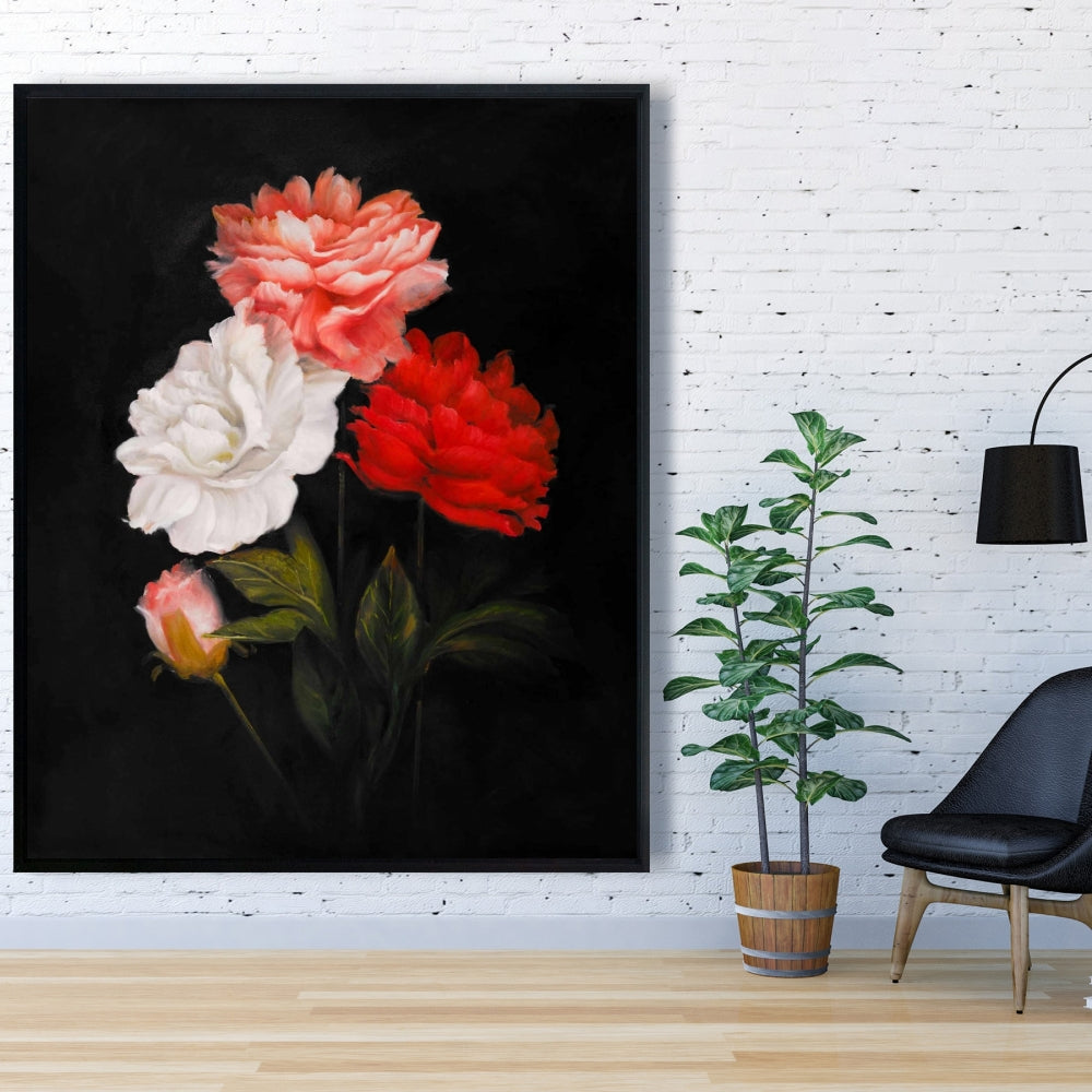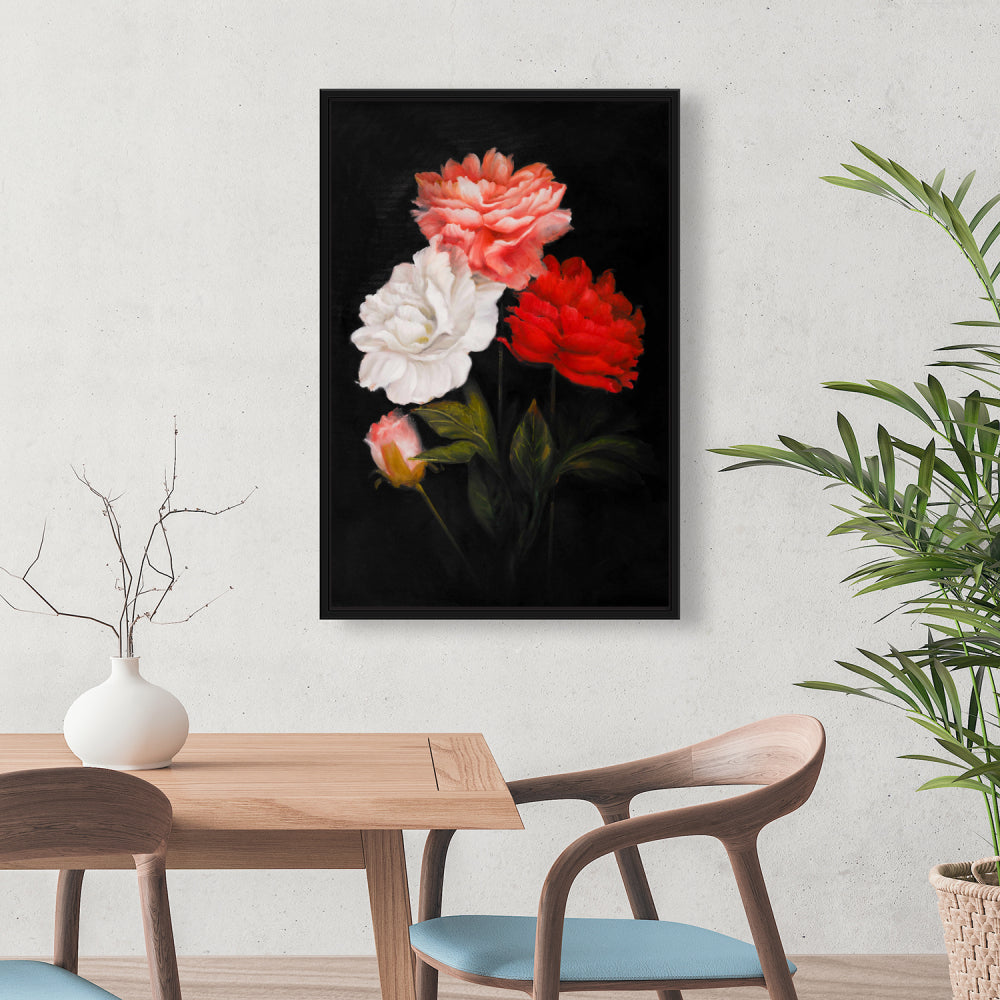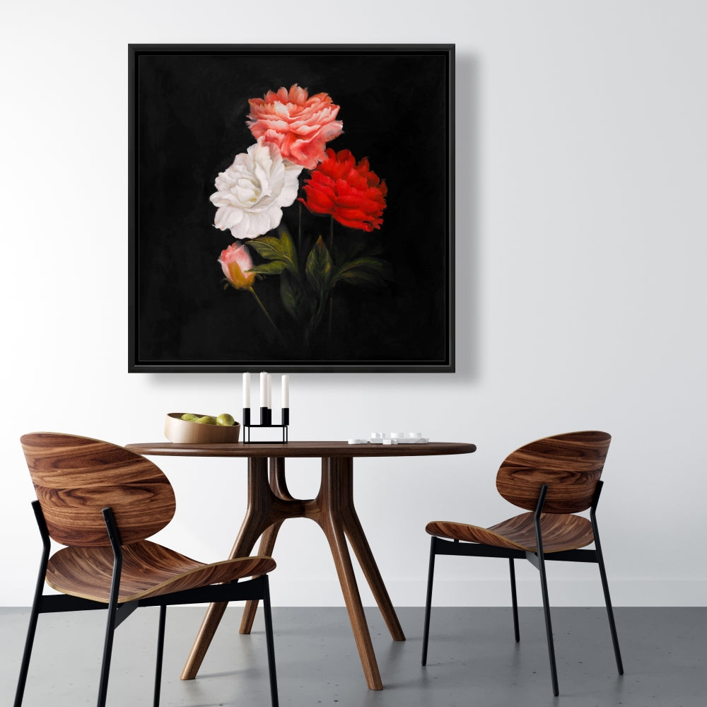 Romantic Black Framed Canvas - Small Bundle of Roses Decor