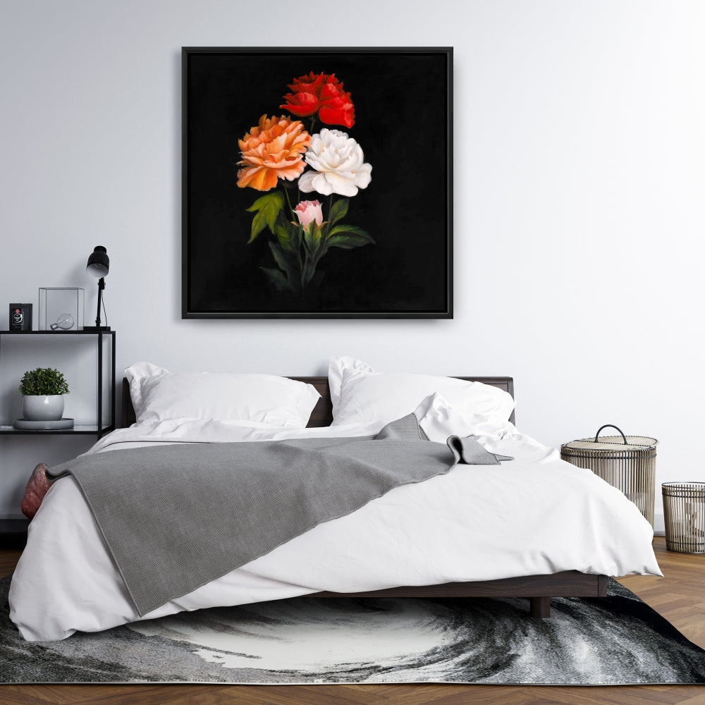 Black Bedroom Framed Canvas | Three Roses Floral Home Decor