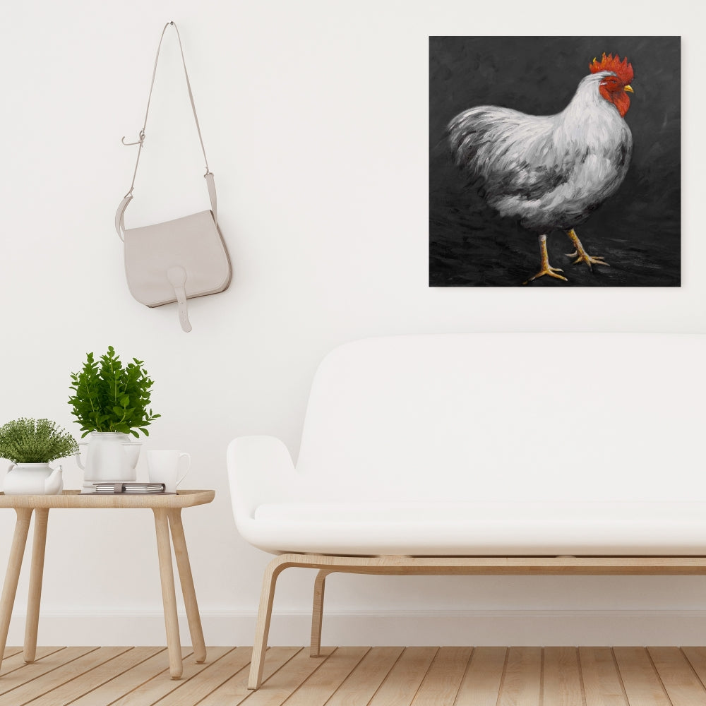 Grey Rooster Canvas - White Farm Animals Wall Art Decor