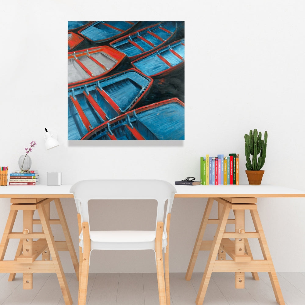 Small Blue and Red Canoes Canvas | Coastal Home Decor