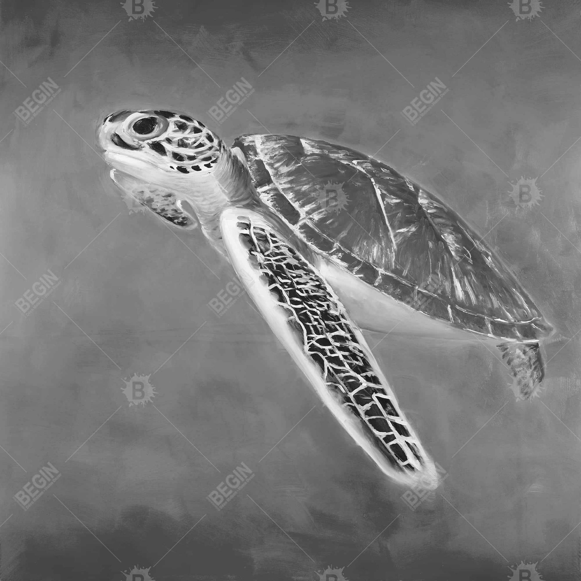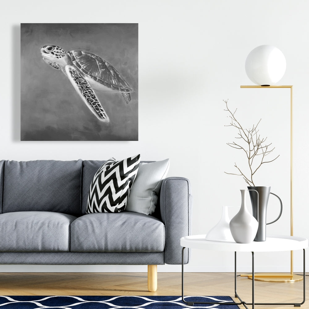 Grayscale Sea Turtle Canvas | Exotic Aquatic Home Decor