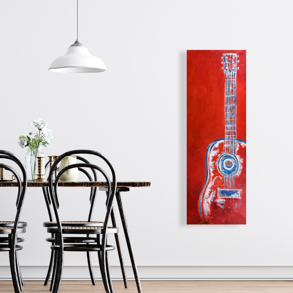 Modern Red Abstract Guitar Canvas | Musical Instrument Art
