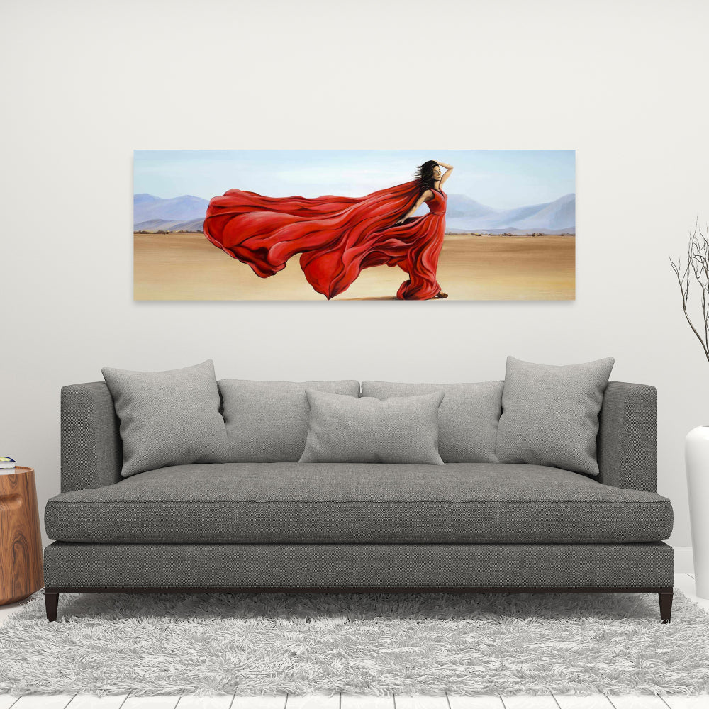 Red Dress in Desert - Blue Contemporary Beach Canvas Decor