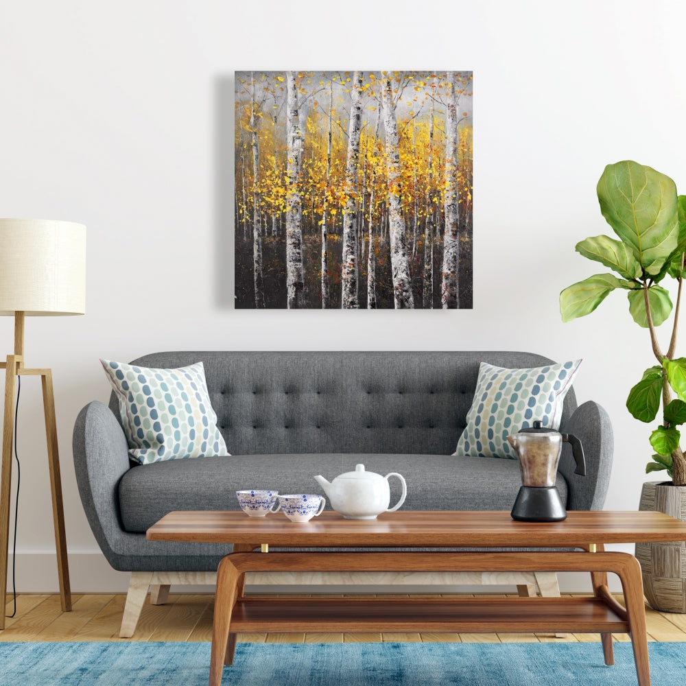 Sunny Birch Trees Gray Canvas | Office Wall Art Decor